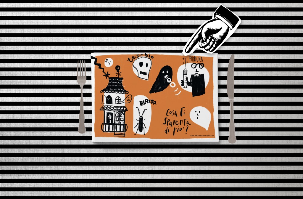 E allora ho pensato che, mentre taglio a fette un polpettone splatter e cospargo di sanguinolento ketchup le patatine, ho bisogno che i mostri a forma di bambino vengano intrattenuti. Non potendo contare sui papà che stanno parlando 90 su 100 di calcio, allora ho pensato a queste tovagliette da stampare! Lasciate sul tavolo un pennarello, possibilmente non indelebile – se volete evitare un omicidio- e fate disegnare a bambini e agli adulti i loro incubi peggiori! Ne vedrete delle belle!